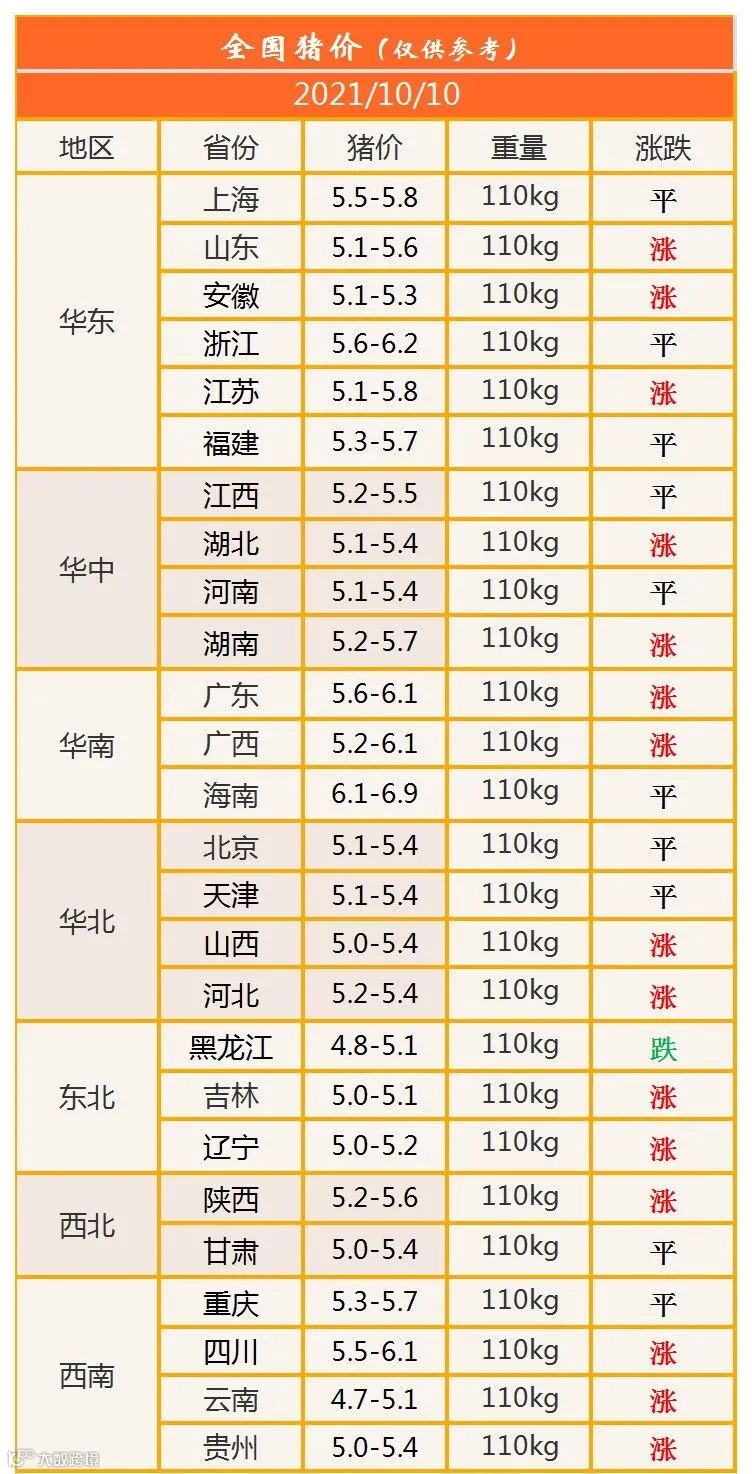 明日猪价2021年10月10日猪价信息