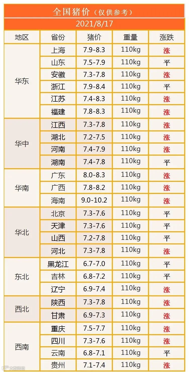 明日猪价2021年8月17日猪价信息