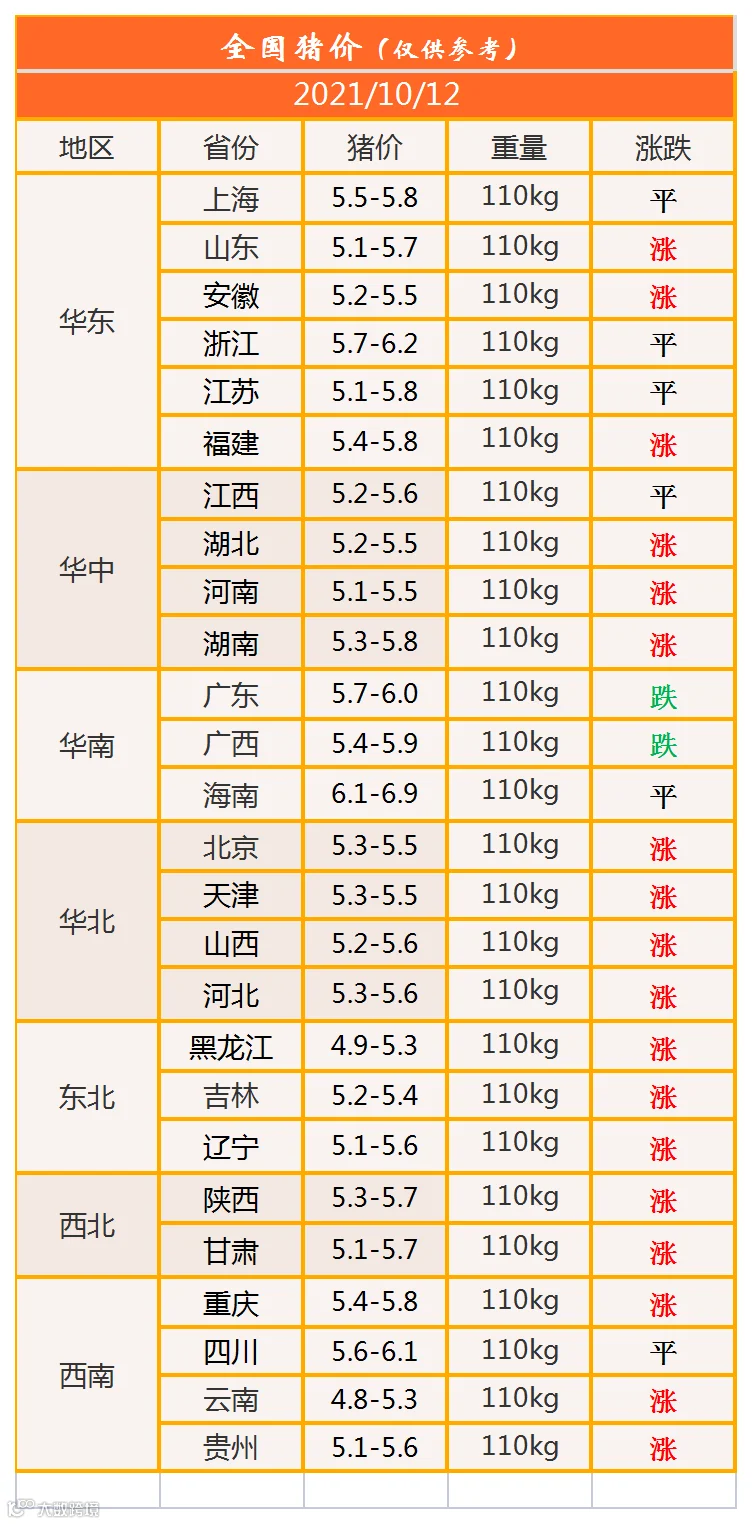 明日猪价2021年10月12日猪价信息