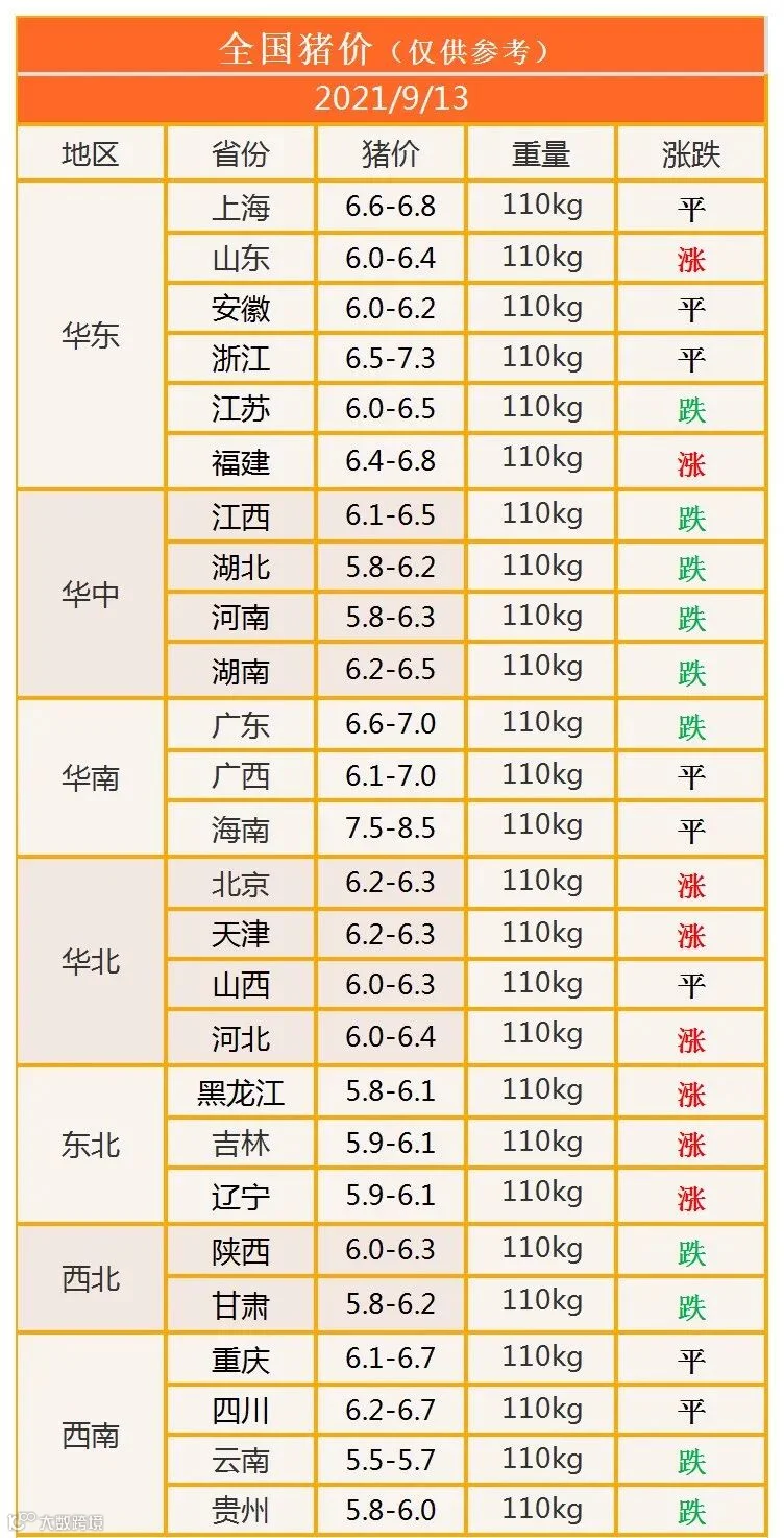 明日猪价2021年9月13日猪价信息