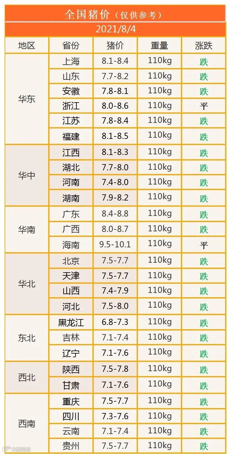 明日猪价2021年8月4日猪价信息