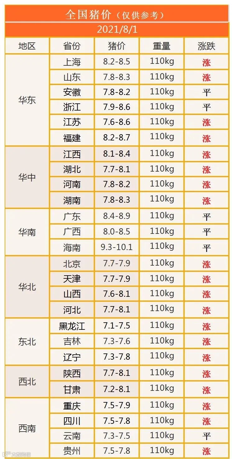 明日猪价2021年8月1日猪价信息