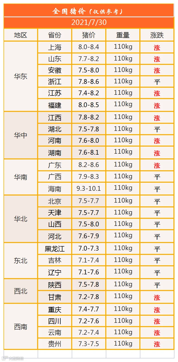 明日猪价2021年7月30日猪价信息
