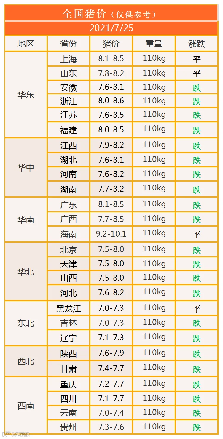 明日猪价2021年7月25日猪价信息