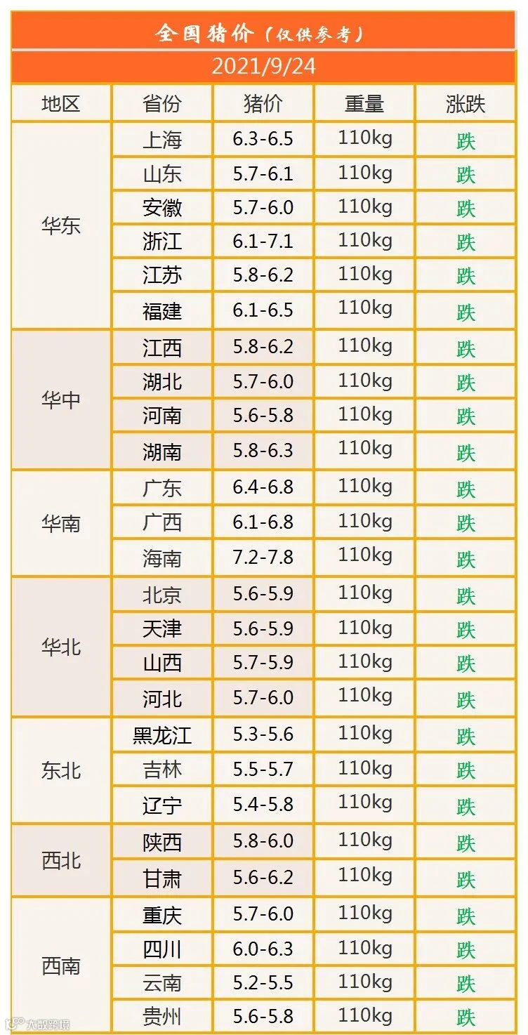 明日猪价2021年9月24日猪价信息