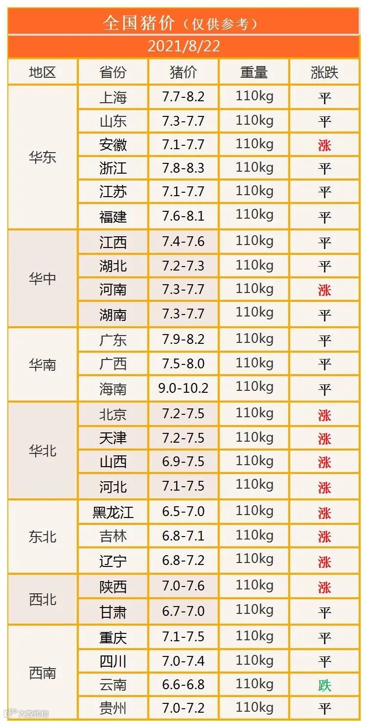 明日猪价2021年8月22日猪价信息