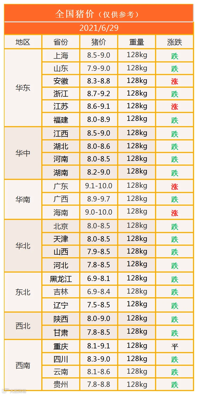 明日猪价2021年6月29日猪价信息