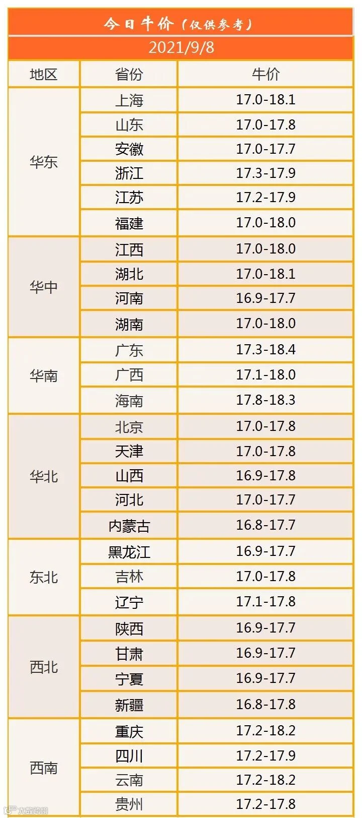 今日牛价2021年9月8日活牛价格