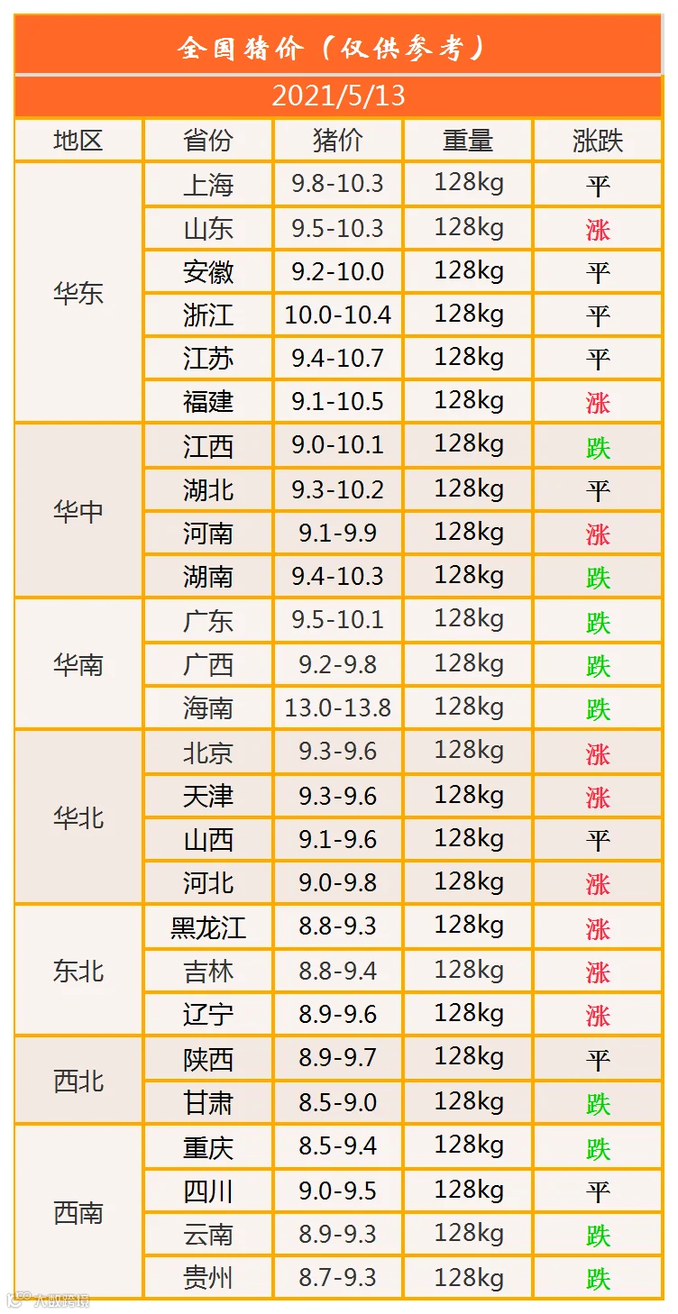 明日猪价2021年5月13日猪价信息