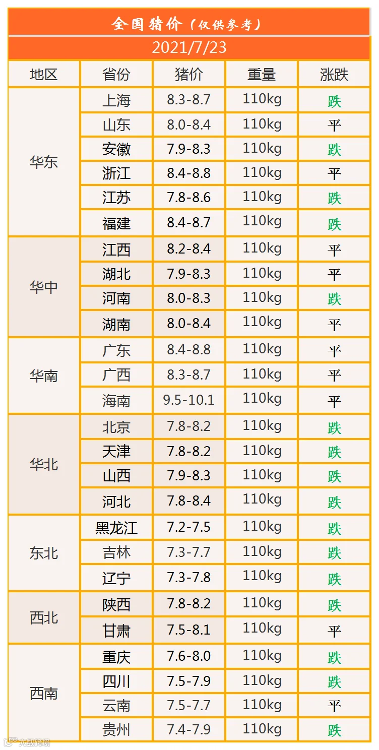 明日猪价2021年7月23日猪价信息