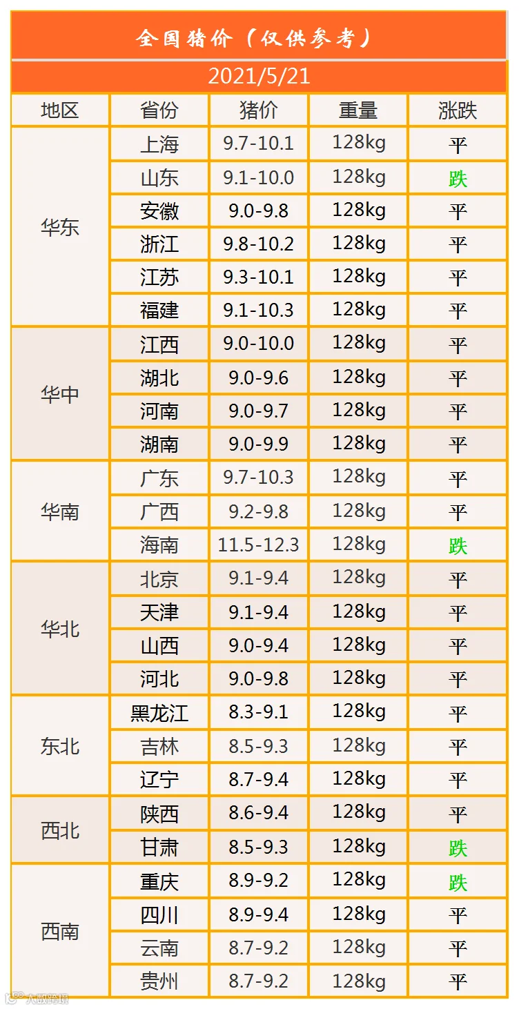 明日猪价2021年5月21日猪价信息