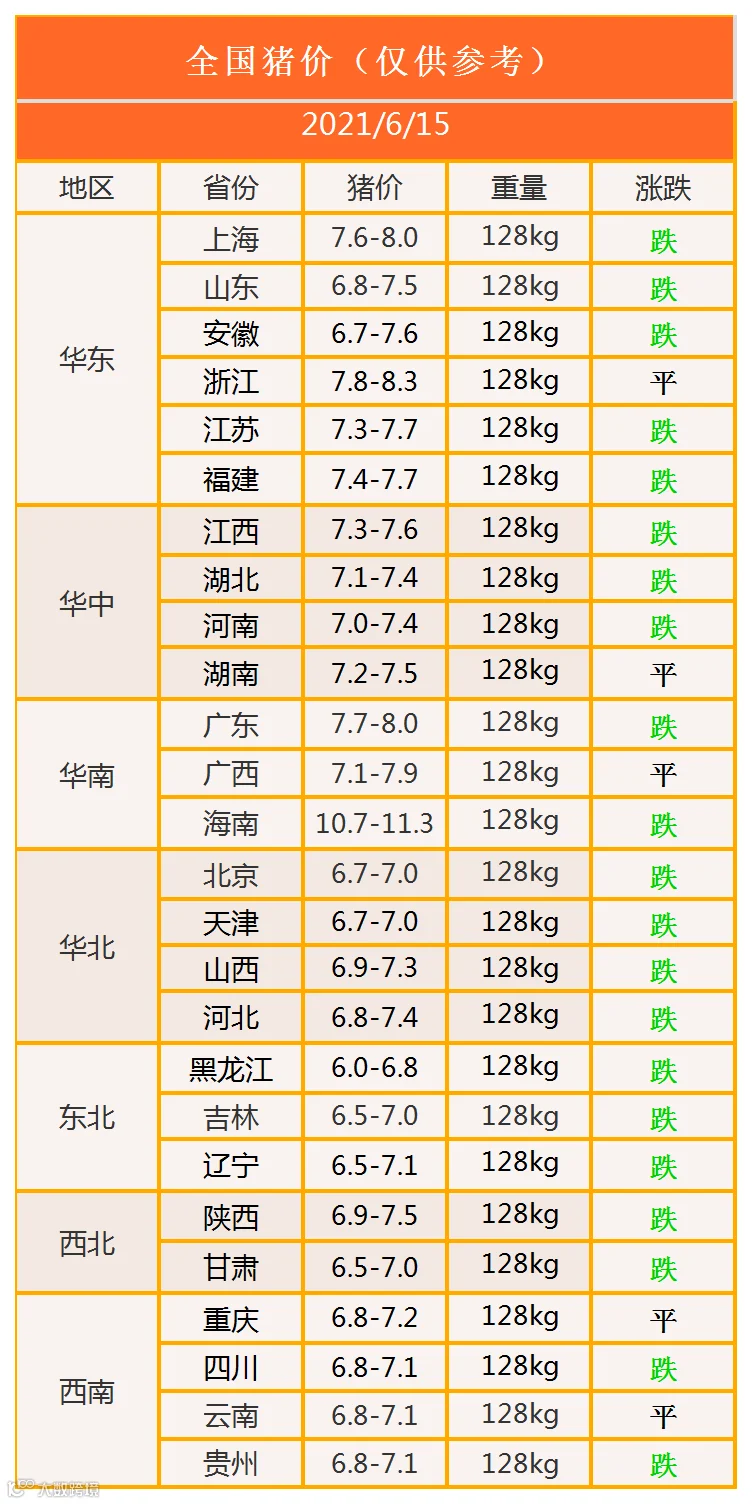 明日猪价2021年6月15日猪价信息