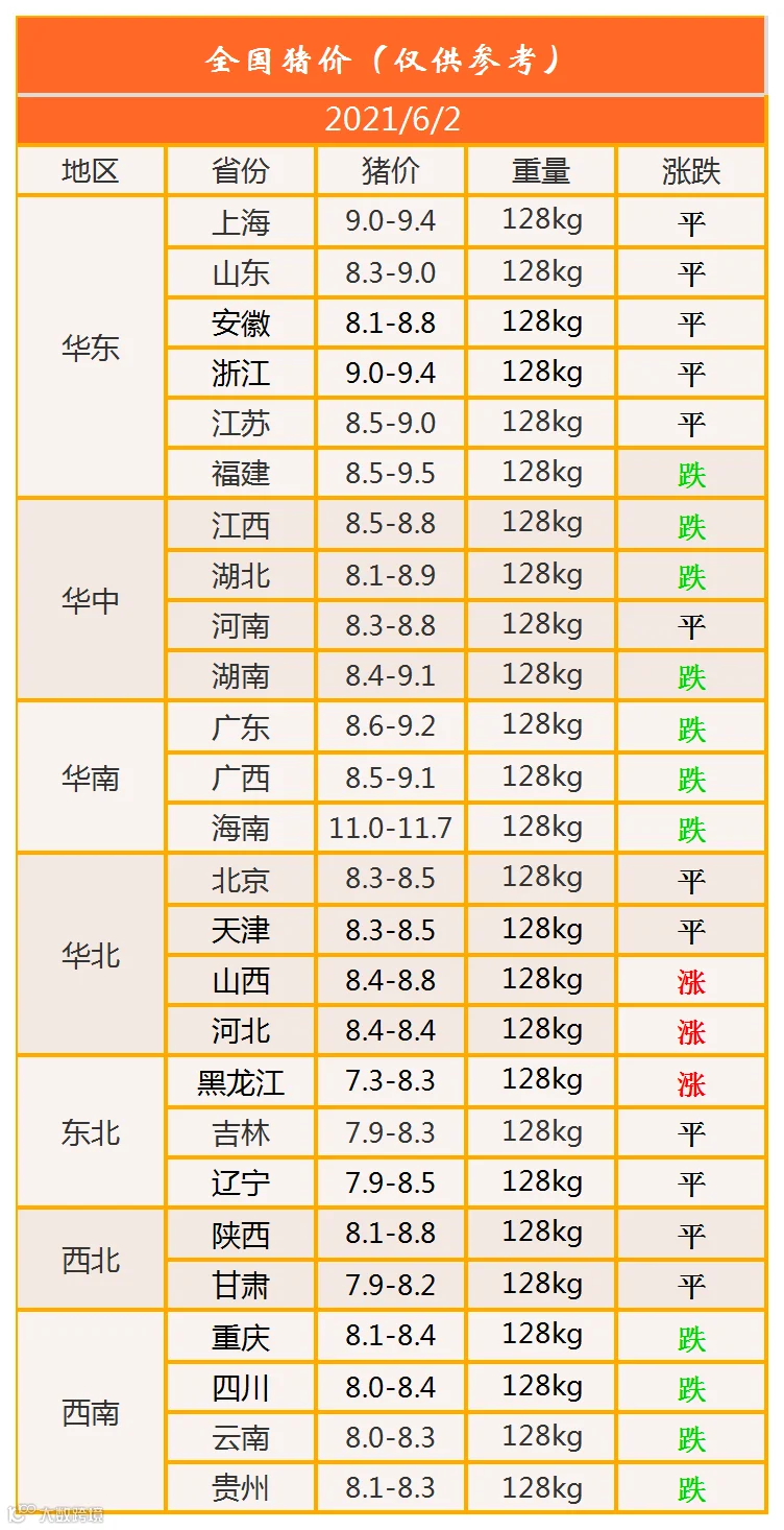 明日猪价2021年6月2日猪价信息