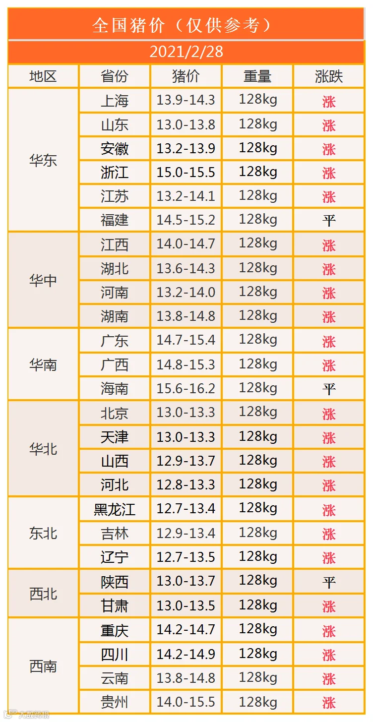 明日猪价2021年2月28日猪价信息