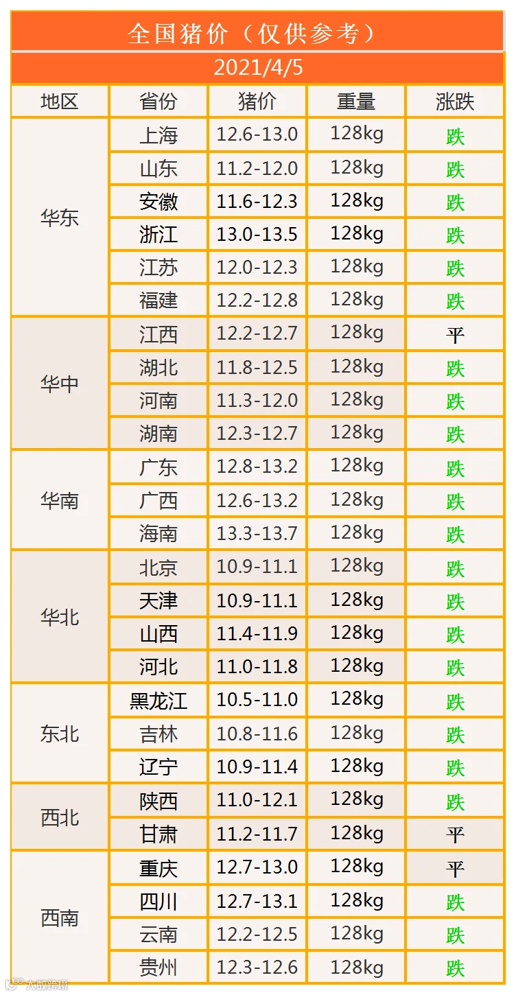 明日猪价2021年4月5日猪价信息