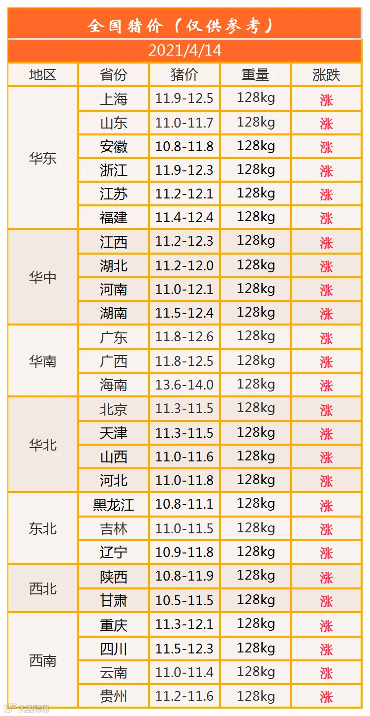 明日猪价2021年4月14日猪价信息