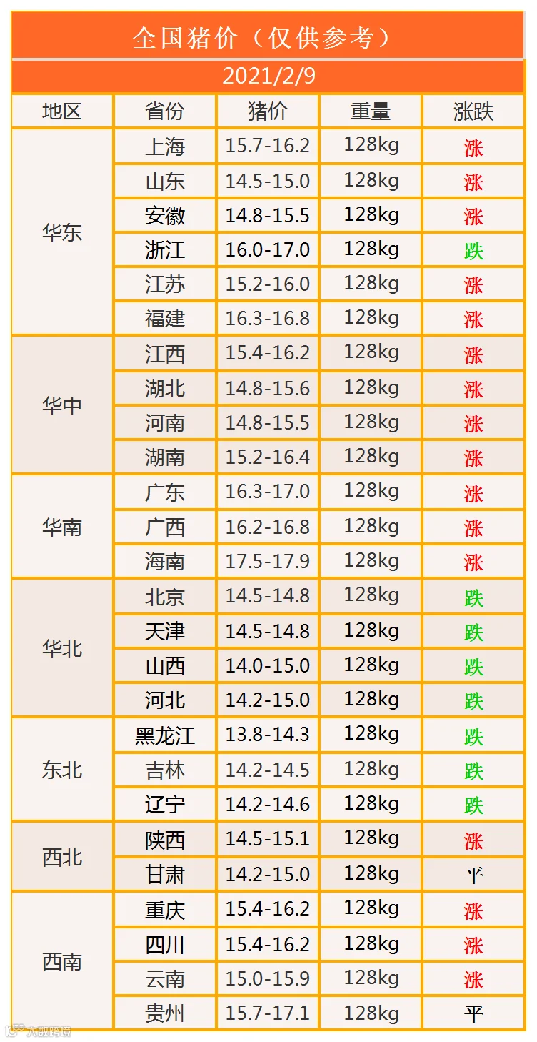 明日猪价2021年2月9日猪价信息