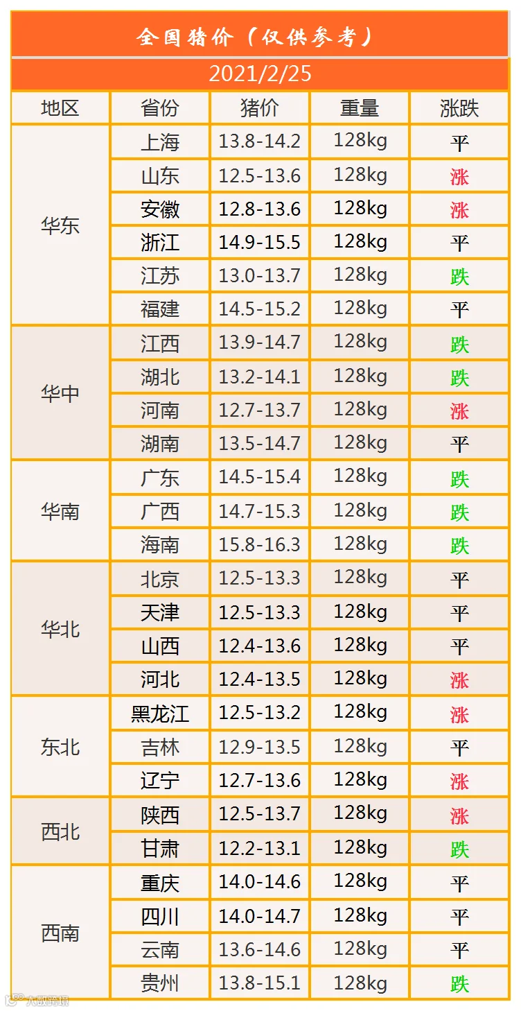 明日猪价2021年2月25日猪价信息