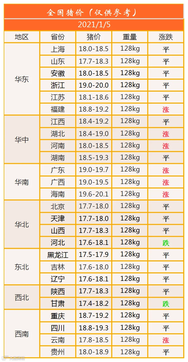 明日猪价2021年1月5日猪价信息