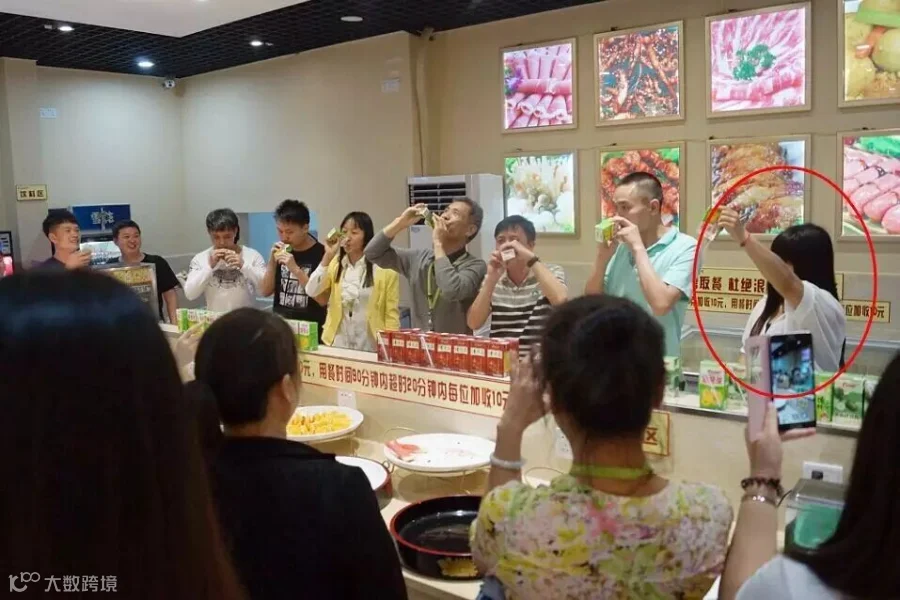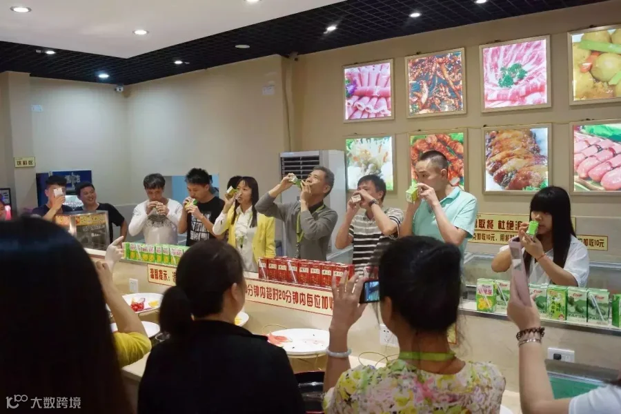 在经过自助与蛋糕的二轮进食风波后,再快速喝完一瓶饮料的获胜者竟然是最右边的这位小女子