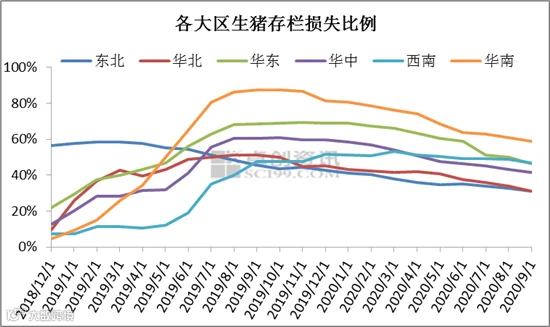 1. 各大区生猪存栏缓慢恢复