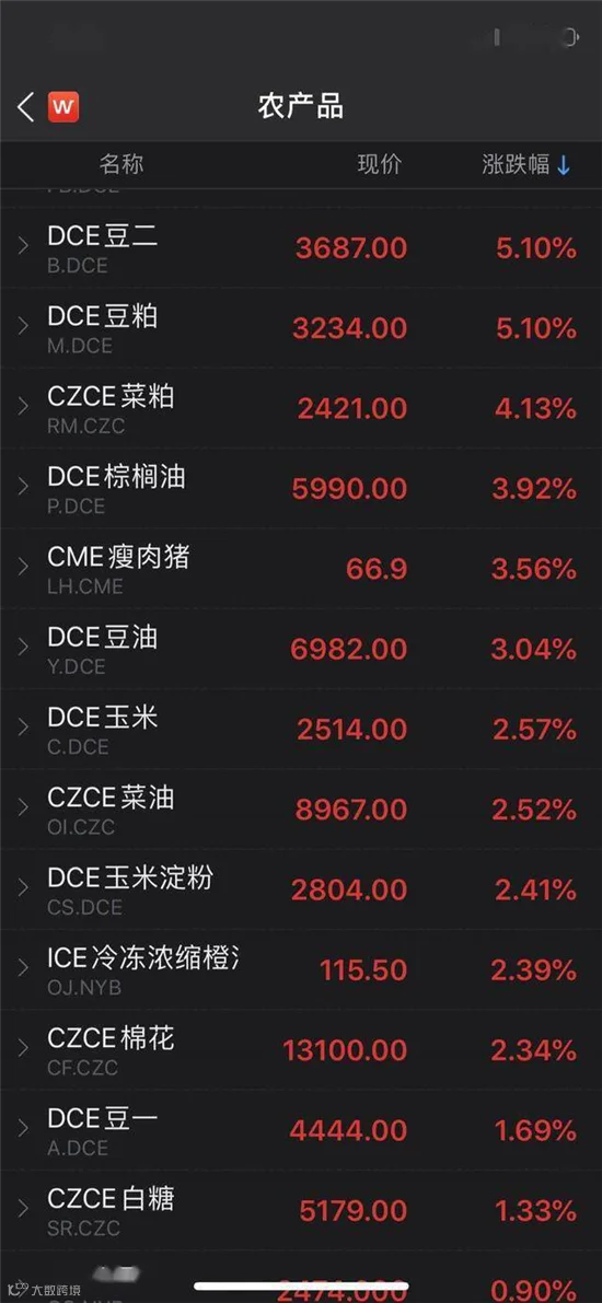 再看期货市场,在经历了假日期间的行情蓄力之后,期货市场首个开盘日农产品呈现出现全线上涨的态势,尤其是玉米和豆粕涨势最为凶猛。