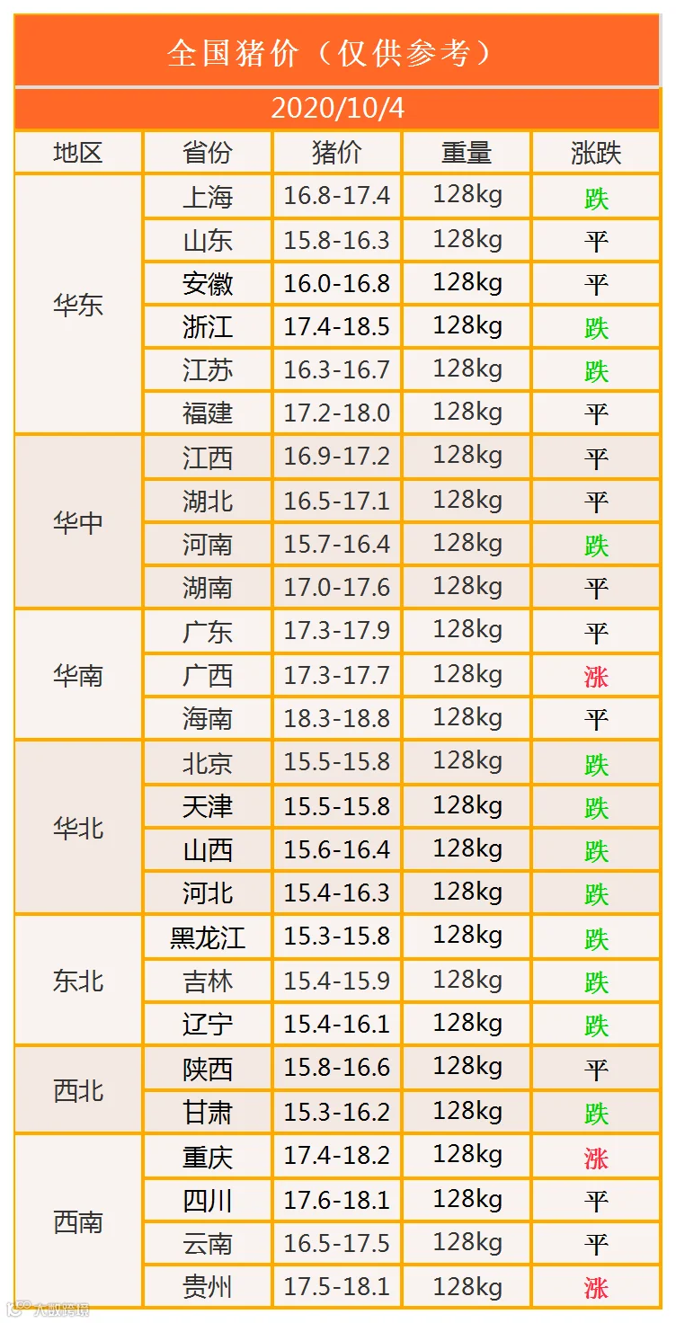 明日猪价2020年10月4日猪价信息