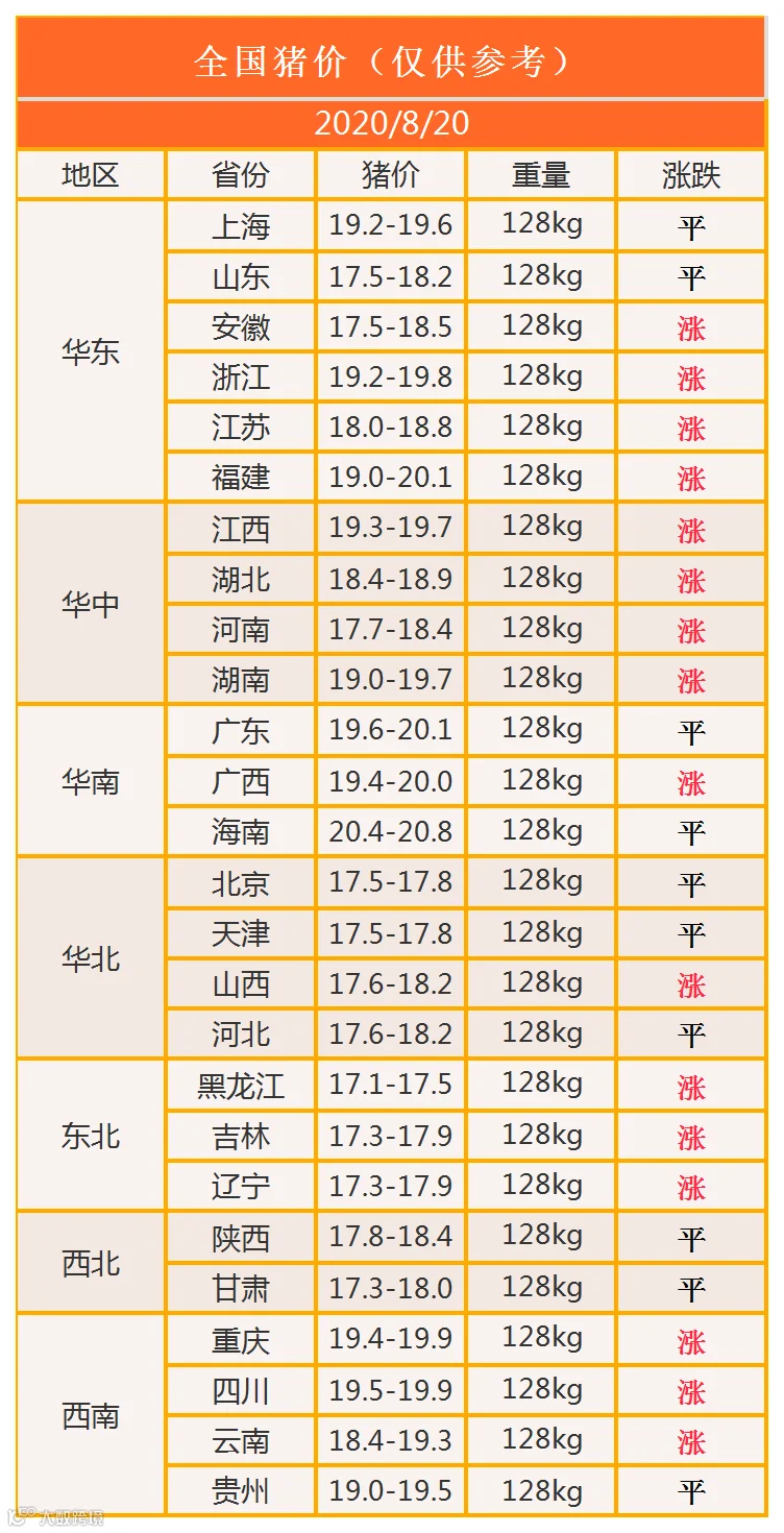 明日猪价2020年8月20日猪价信息