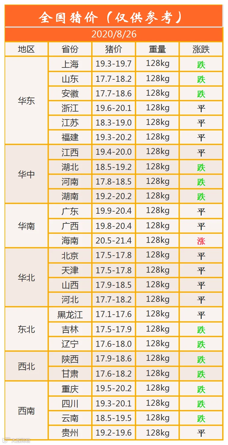 明日猪价2020年8月26日猪价信息