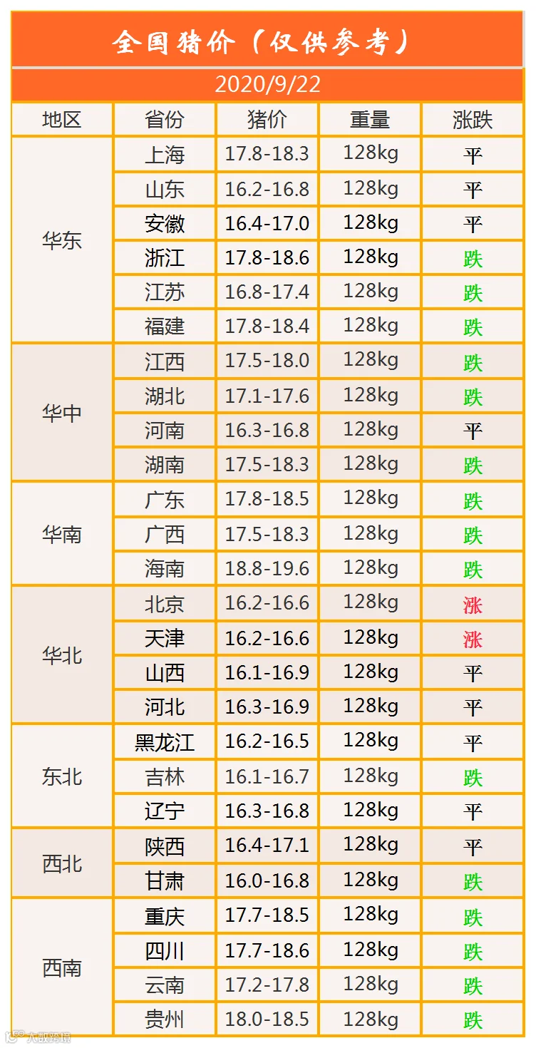 明日猪价2020年9月22日猪价信息