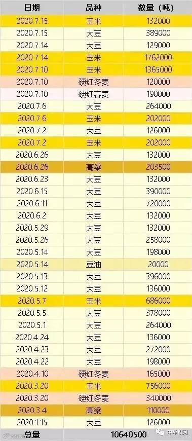 14、7月16日消息,2020年迄今,中国已经购买美国大豆、高粱、小麦、玉米和豆油五种农产品,累计采购量达1064万吨。