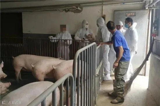 此时已是下午1点,执行干警们跟随李某某进入猪场,在进行喷雾器喷洒消毒、室内雾化消毒后,执行局干警穿上防护服全副武装对场内的存栏生猪进行清点。