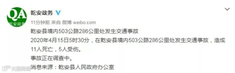 2020年4月15日5时30分左右,吉林省松原市乾安县境内503公路286公里处发生一起三车相撞交通事故。