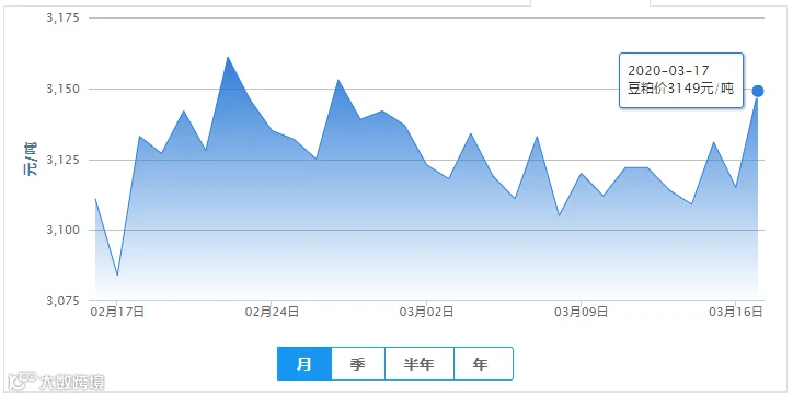 今日全国豆粕均价为3115元/吨,较昨日下跌16元/吨,较上周下跌5元/吨。