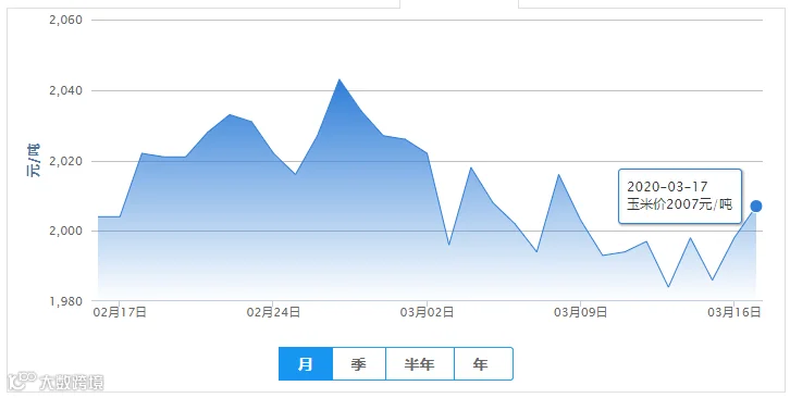 今日全国玉米均价为1998元/吨,较昨日上涨12元/吨,较上周上涨5元/吨。