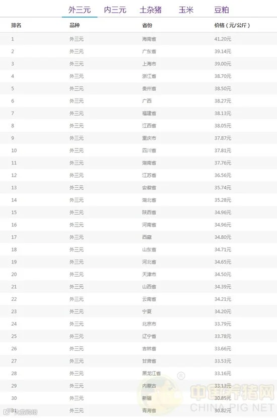 “40元”猪价队伍:海南省,41.20元/公斤;