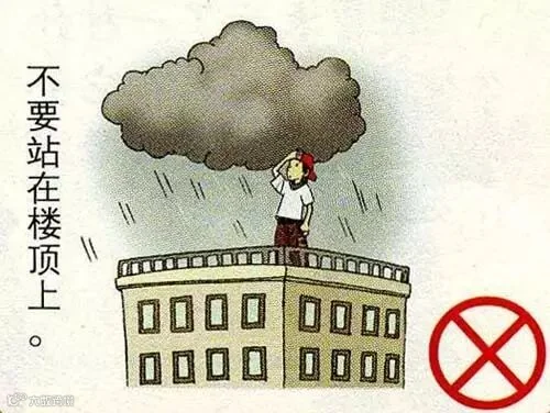 3、雷雨天气时不宜停留在无防雷设施的建筑楼顶、车库、车棚、高压线附近等区域。
