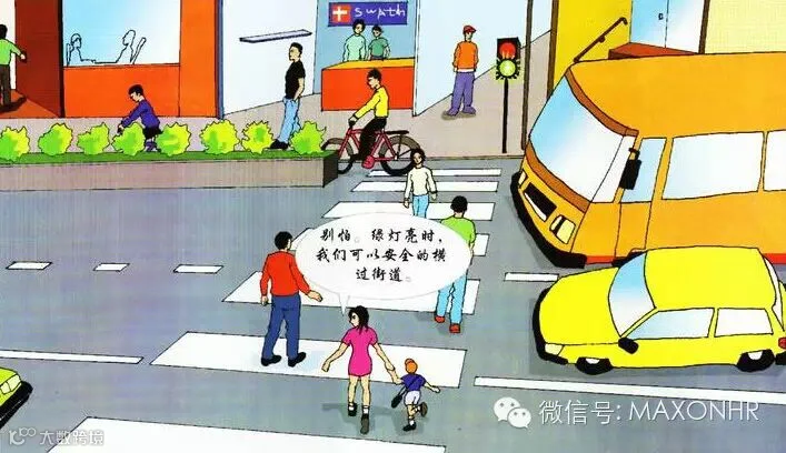 过马路,仔细瞧,确认安全才通行;