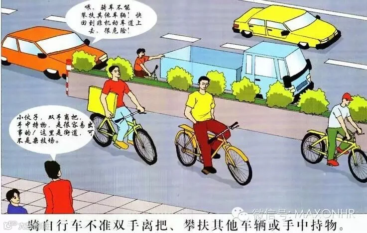 骑单车,看标志,切勿闯入汽车道;