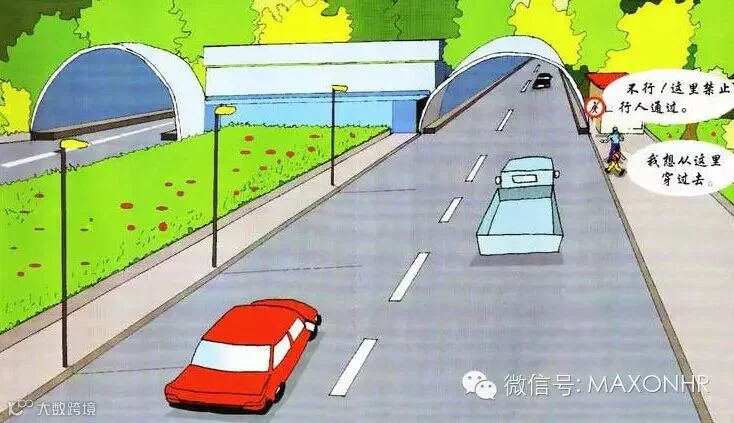 高速路,车速快,行人进入易伤害;