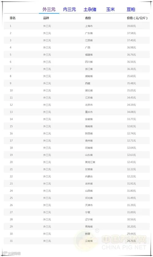 今日最高省份:上海市外三元均价为39.00元/公斤;