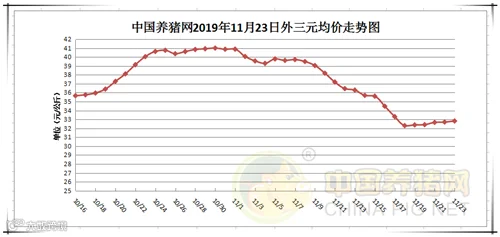 2019年11月23日,据中国养猪网猪价系统监测数据显示,全国生猪均价为32.82元/公斤,价格较昨日报价上涨0.12元/公斤,较上周下跌1.76元/公斤。今日猪价涨幅维持在0.04-0.54元/公斤,今日猪价跌幅维持在0.01-0.80元/公斤。