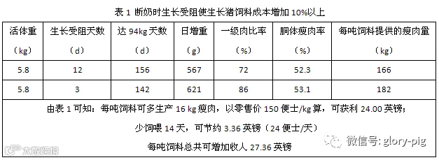 上述现象已被英国的一些数据所证实(表1)—生长受阻天数下降9天(从12天下降到3天),为生产者节约将近20英镑/吨或14%的饲料(饲喂至屠宰所消耗的所有饲料)成本。