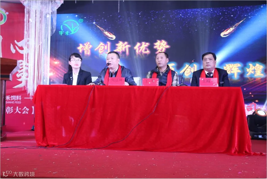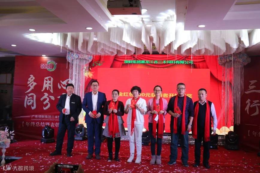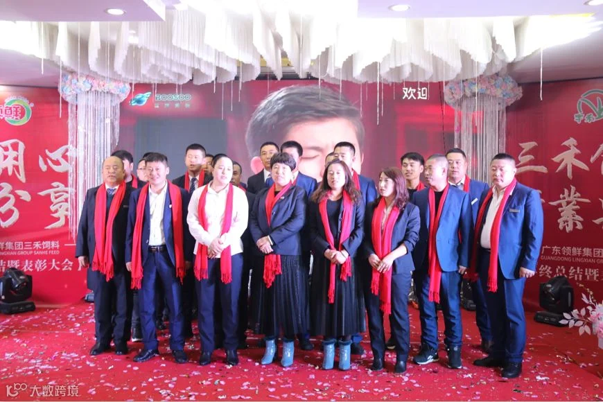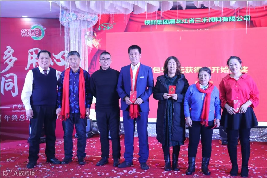 2020年1月7日,广东领鲜集团黑龙江省三禾饲料有限公司“增创新优势、再创新辉煌”总结表彰大会暨“新起航、聚辉煌”元旦联欢晚会,在哈尔滨市太平镇蔡明酒店隆重举行。 广州领鲜集团董事长、总裁、三禾公司总经理及各分公司直属领导莅临现场,优秀合作伙伴与三禾员工欢聚一堂、共贺新春。