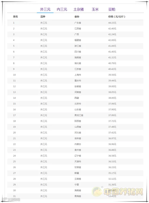 今日最高省份:广东省外三元均价为44.15元/公斤;