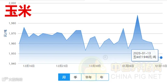 今日全国玉米均价为1946元/吨,较昨日下跌1元/吨,较上周下跌9元/吨。