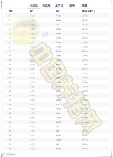 今日最高猪价:广东外三元均价为26.17元/公斤。