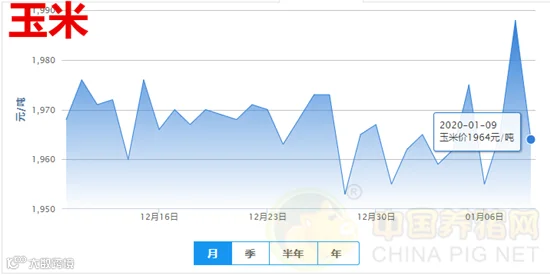 今日全国玉米均价为1964元/吨,较昨日下跌24元/吨,较上周下跌1元/吨。