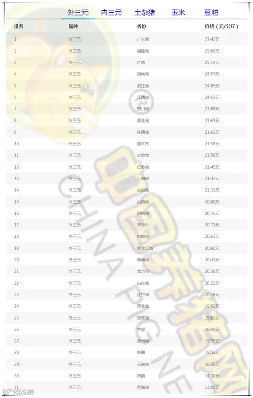 今日最高猪价:广东外三元均价为27.42元/公斤。