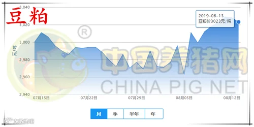 今日全国豆粕均价为3023元/吨,较昨日下跌5元/吨,较上周上涨12元/吨。